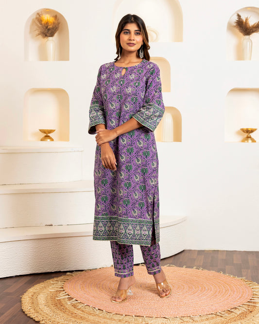 Gul Noor Elegant Purple Floral Cotton Suit Set
