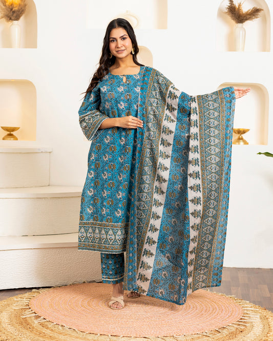 Kalpana Chamak Blue-Green Handprinted Suit Set