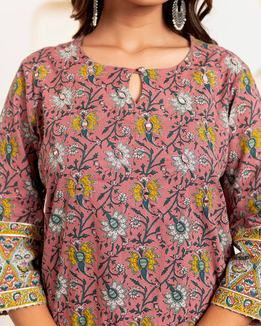 Gul Noor Dusty Pink Block Printed Cotton Suit Set