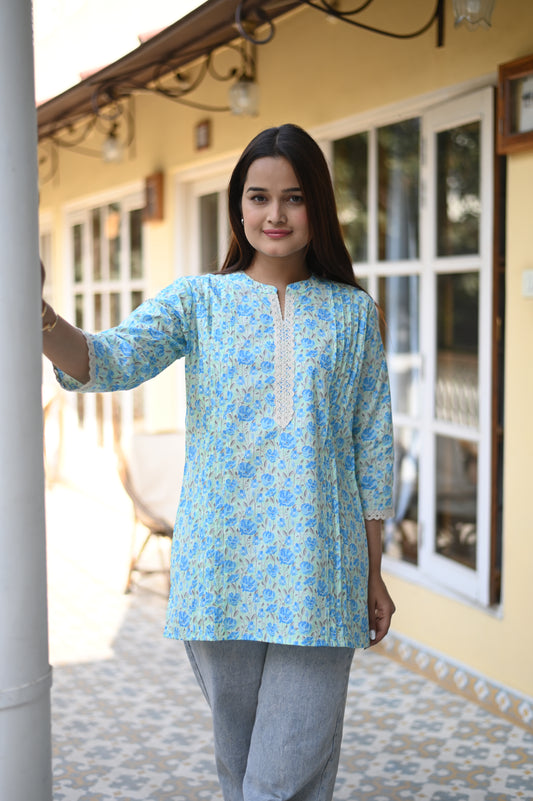 Gul Noor Sky Blue Block Printed Cotton Suit Set