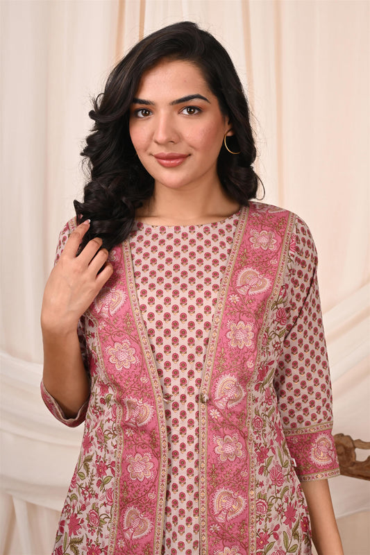 Kohi Noor Pink Floral Anarkali Cotton Suit Set