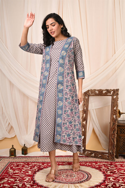 Kalpana Taraash Teal Beige Floral Printed Cotton Suit Set