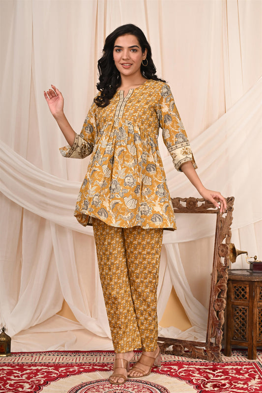 Kalpana Taraash Mustard Gold Printed Cotton Suit Set