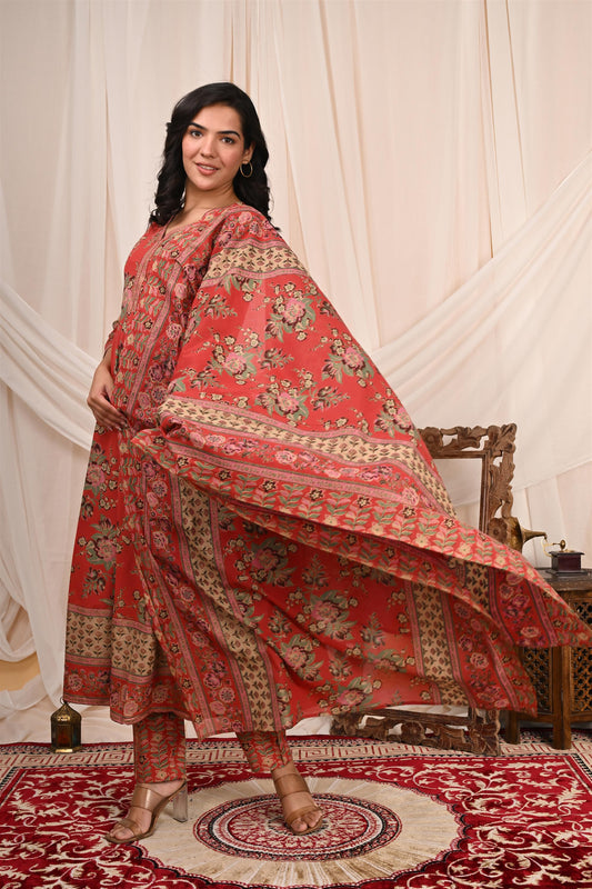 Kalpana Chhavi Rust Orange Printed Cotton Suit Set