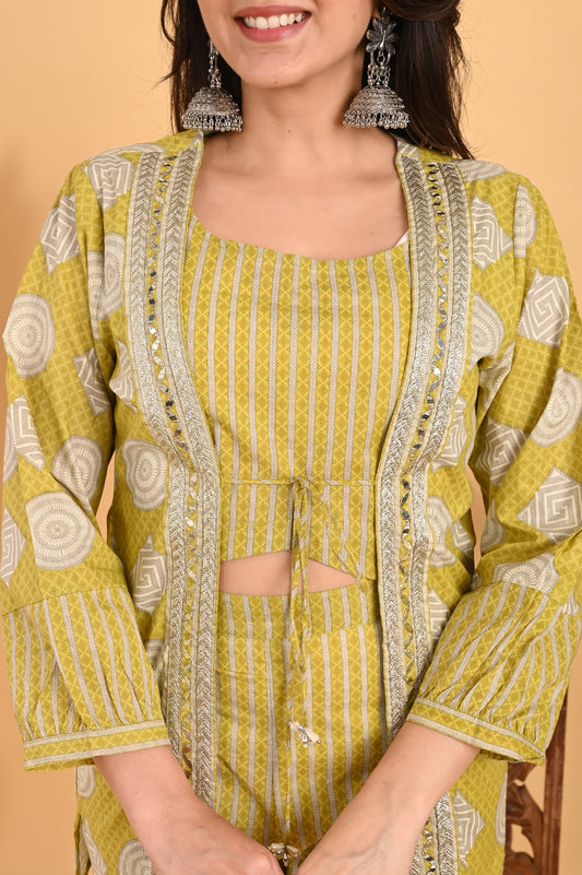 Ridaa Lime Green Three Piece Co-ord Set
