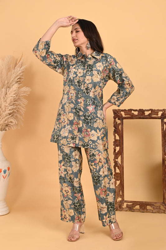 Thumri - A timeless grey floral co-ord set