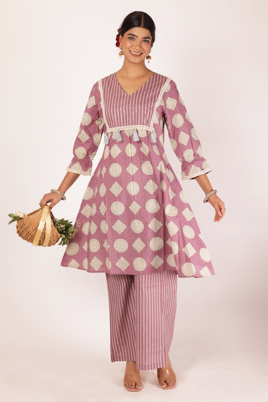 Krishna Pink-Grey Co-ord Set