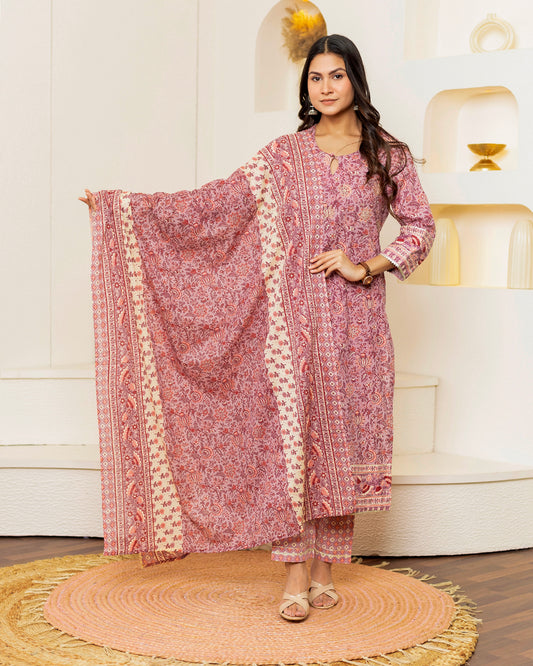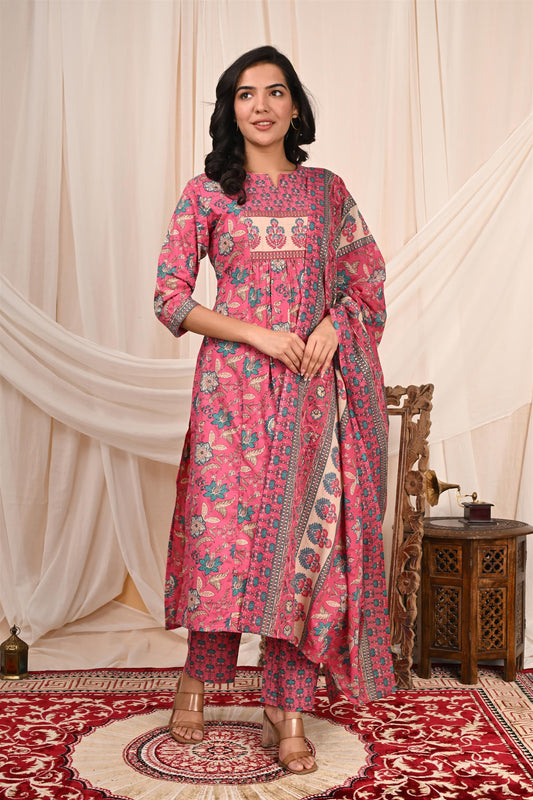 Kalpana Chamak Rani Pink Printed Cotton Suit Set