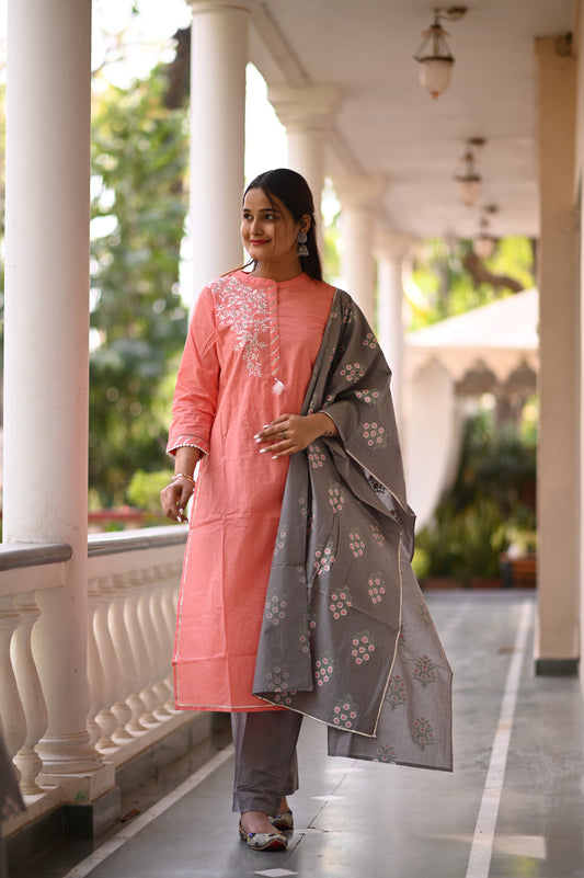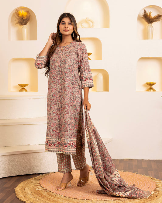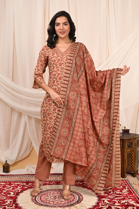 Kalpana Taraash Beige Bloom Terracotta Cotton Suit Set