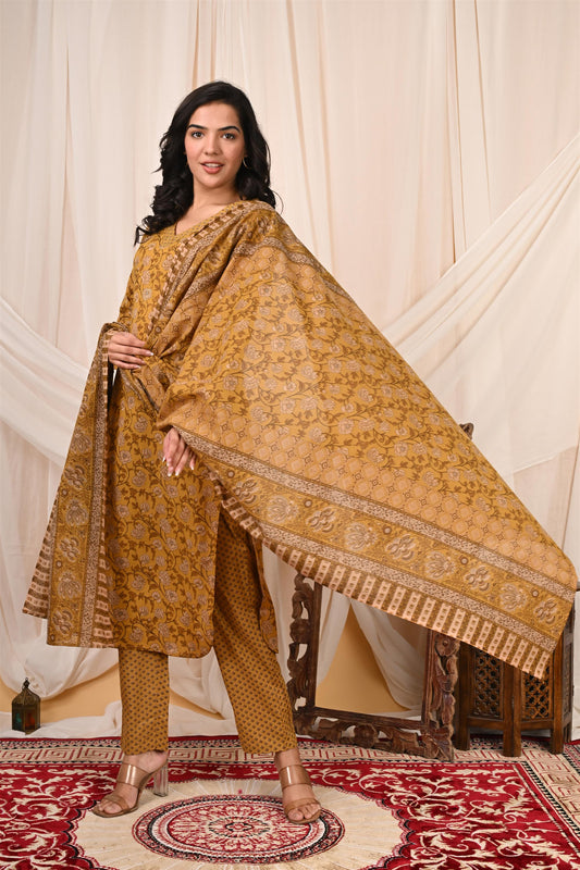Kalpana Taraash Mustard Gold Printed Cotton Suit Set