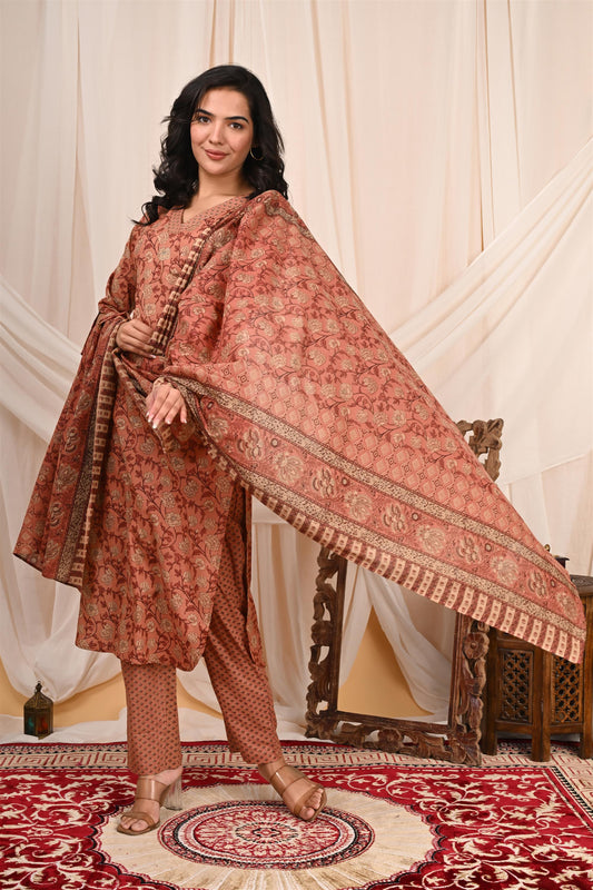 Kalpana Chhavi Rust Orange Printed Cotton Suit Set