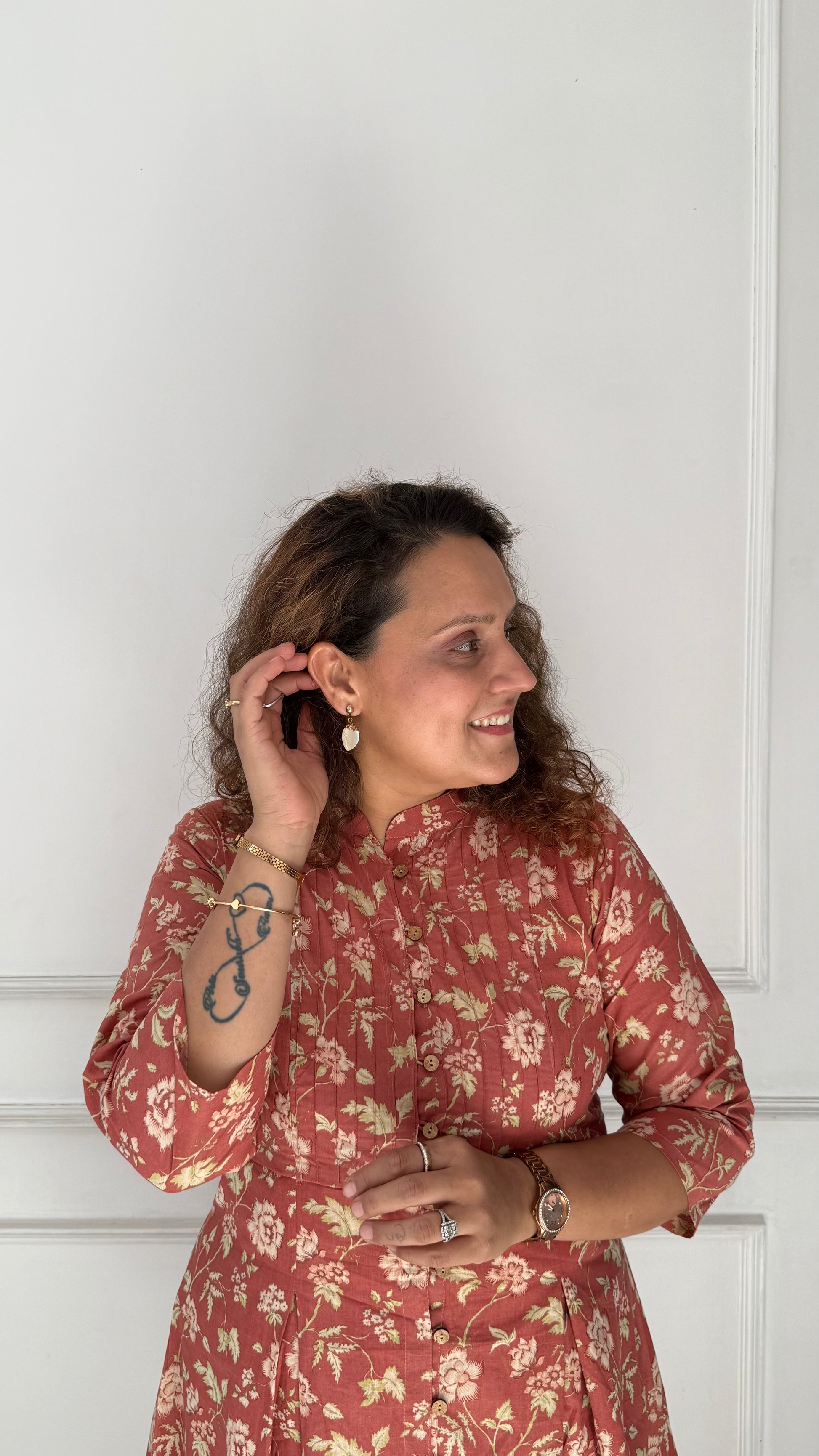 Arohi - an elegant soft red floral co-ord set